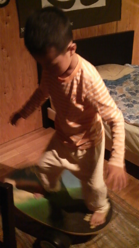 海遊びが待ちきれなく、インドボードでイメトレしている我が子。 ここからが本当の夏休みだぜ♪