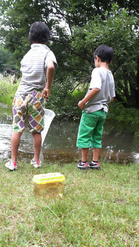 子供のリクエストに応えて近くの緑地公園に来ました。虫から魚にターゲットチェンジ!!