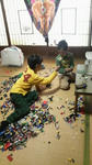子供たちはレゴで遊んでいます。 オタマジャクシも大量にとってきました。 今からみんなで温泉に出発!